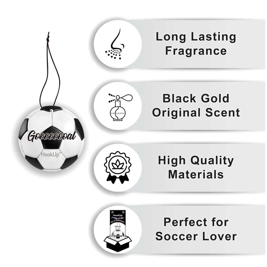 •Soccer air freshener made from high quality materials. Ideal for cars, offices, homes, lockers, bags, closets, RVs, boats, and any desired spaces.